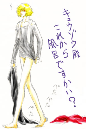 「キュウさんは服を脱ぐときは必ず下から脱ぐのう」